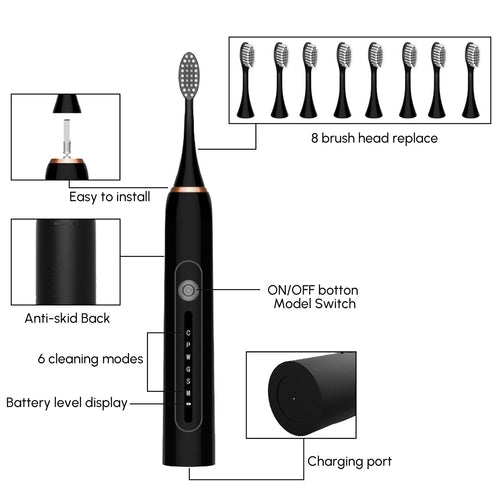 Electric Sonic Toothbrush with 6 Modes and 8 Brush Heads