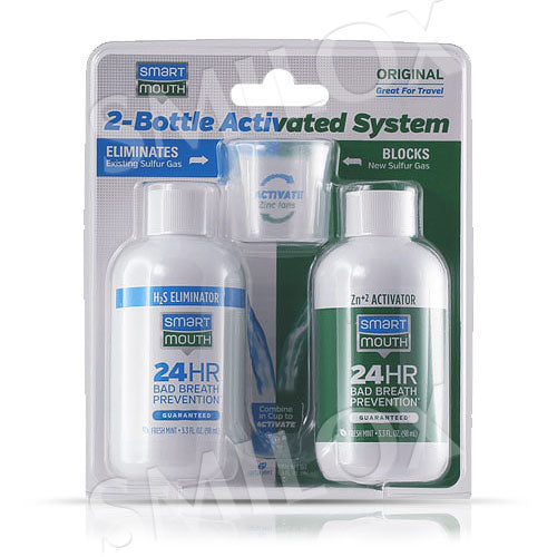 Help prevent bad breath anywhere you go with the SmartMouth 2 Bottle Activated System.The travel size bottles meet TSA requirements for air travel and ensure that the Sulfur Eliminator and Zinc Ion Activator solutions remain separate until use.